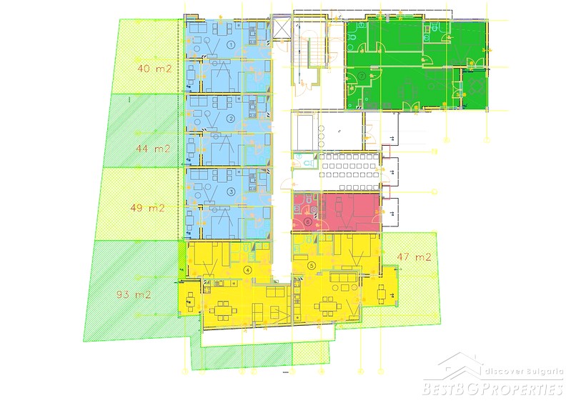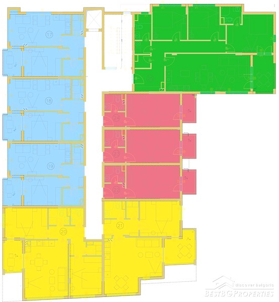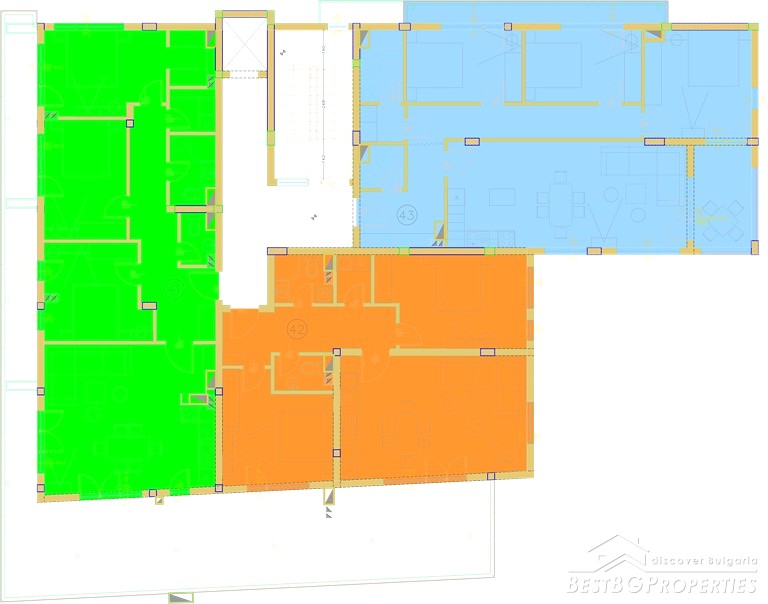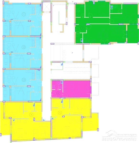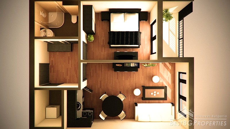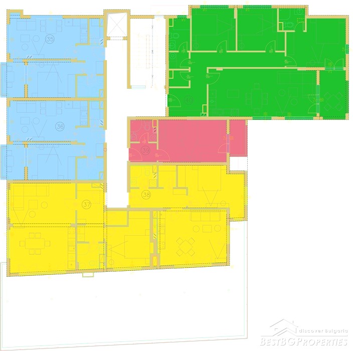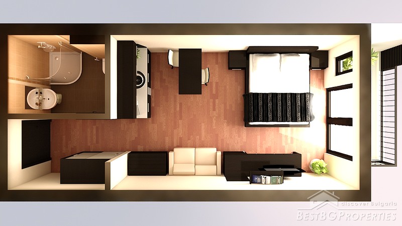 This is a residential apartment building, part of the complex Atlantis. The building is located 200 meters from the sea in the prestigious neighborhood of Bourgas - Sarafovo. It comprises 50 apartments of which some are studios, one, two and three bedroom apartments of different sizes, varying from 32 sq m to 138 square meters. The biggest part of the apartments will have sea views. The residential building consists of 6 floors and entrance.