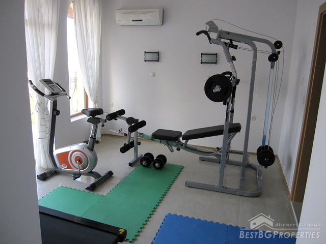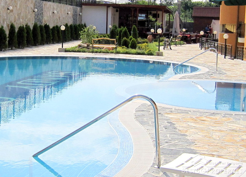 There is a wonderful restaurant which tempts its guests with delicious specialties prepared with ecologically clean own produce. There is also a barbecue provided in the spacious summer garden. The additional services and amenities in the complex include an outdoor swimming pool with parasols and chaise-lounges, free transfer to the beaches of the resort, fitness room, parking for 50 cars, safe, 24-hour security guard and video monitoring.