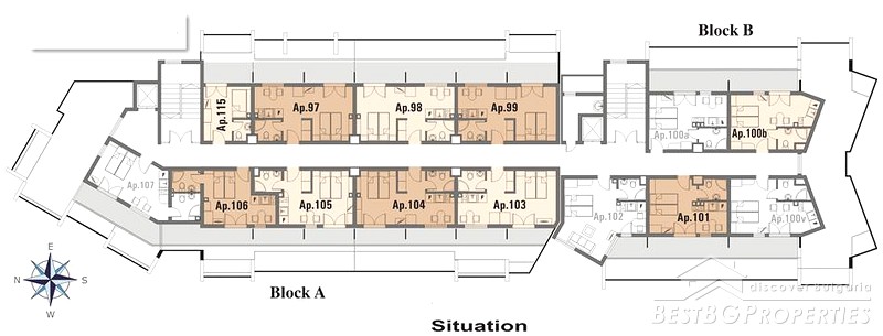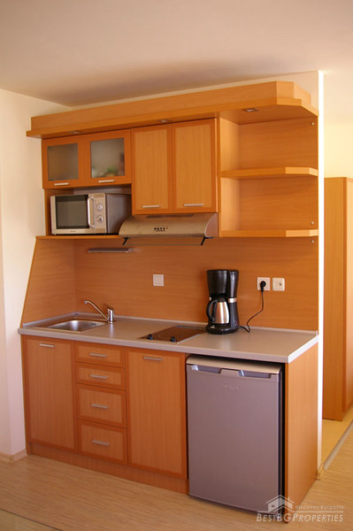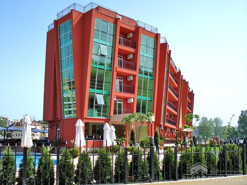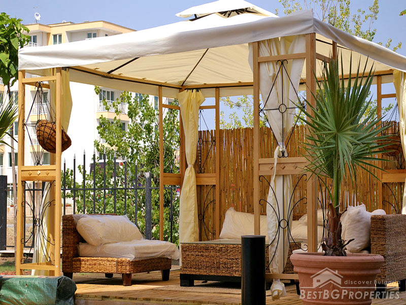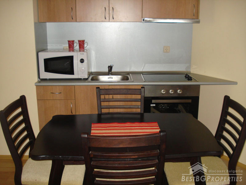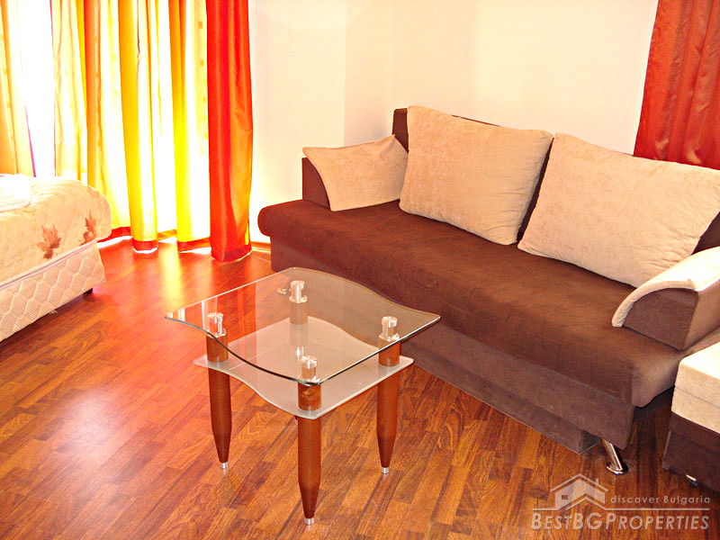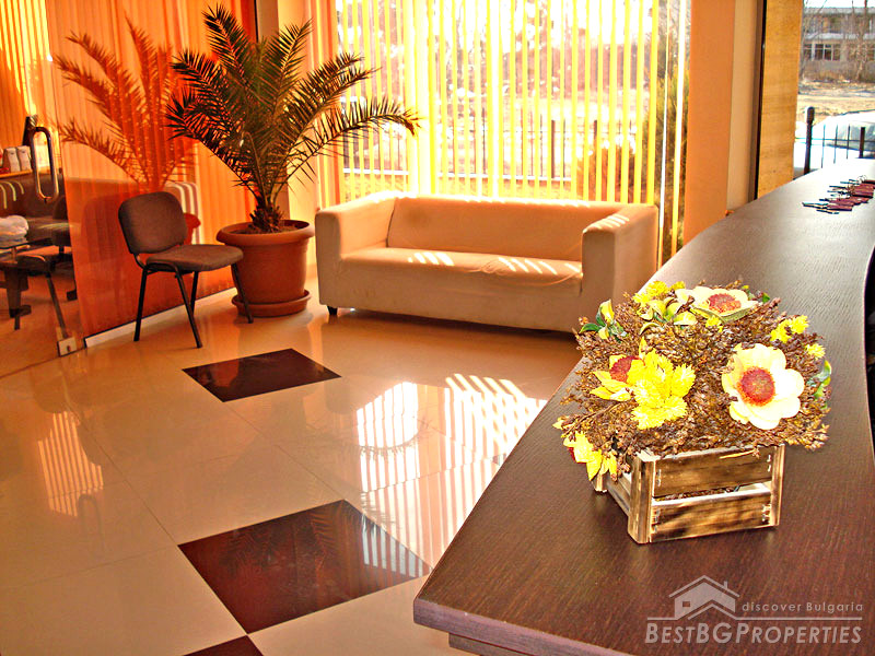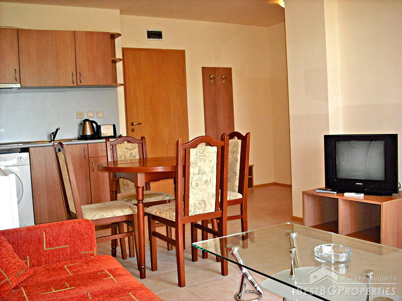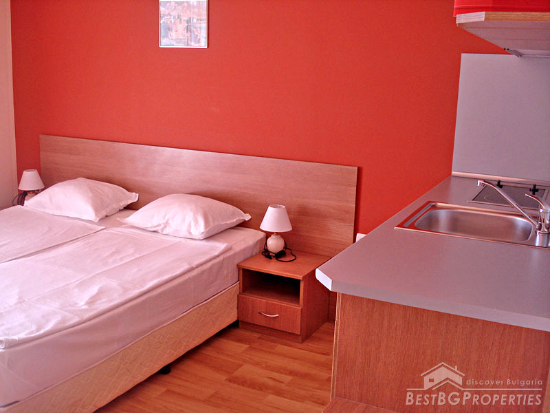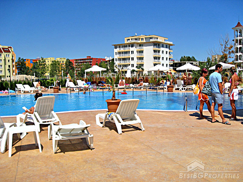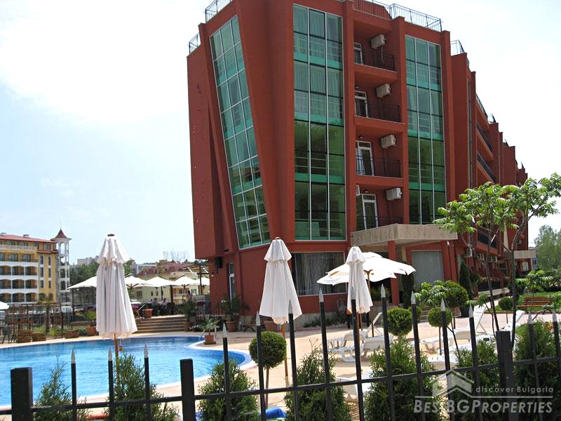 The complex is a modern construction, with high-quality and very interesting style, which is the company's trade mark, a guarantee for stillness and comfort. The complex is completely finished. It consists of one hundred and fifty apartments and studios, a swimming pool outdoor for adults and children, restaurant and bar. There is 24-hours security, security system, parking and guaranteed maintenance. 80% of all apartments are already sold, the rest of the apartments are still not sold, as some of them are reserved. The apartments offered are fully furnished.