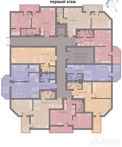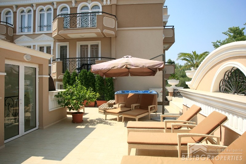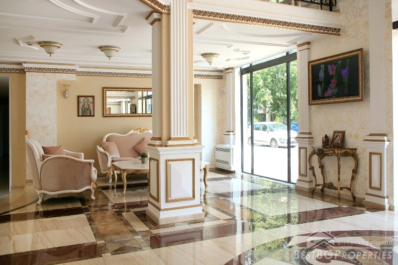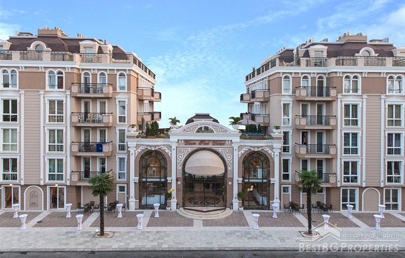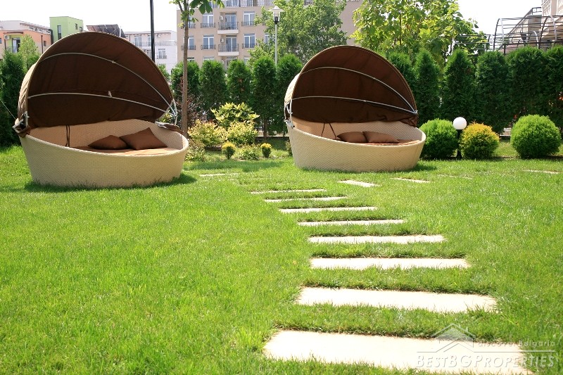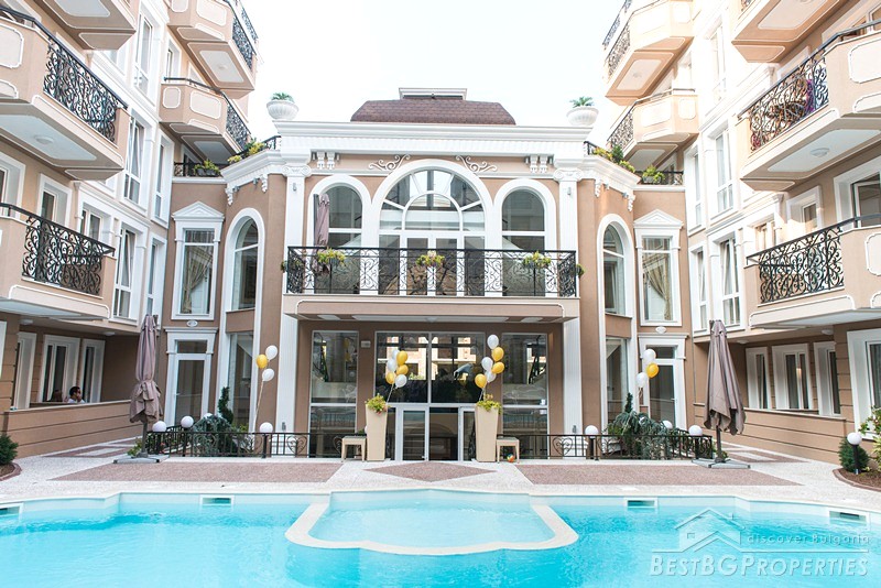 With are glad to introduce to you this new apartment complex, which is located in the central part of resort Sunny Beach / next to Cascadas 2 / 10 minutes walk from the beach. Complex impresses with its unique architecture, high quality and offers first class conditions for comfortable vacation. The complex consists of two separate buildings A and B connected with covered link with indoor luxury spa center.