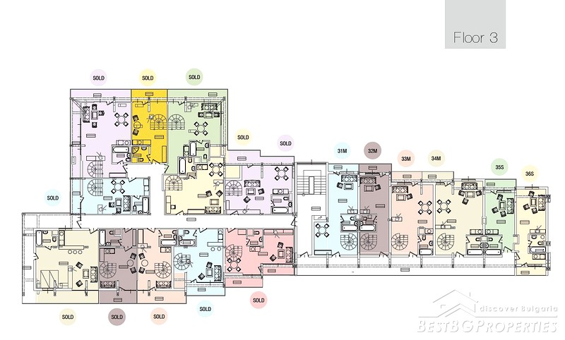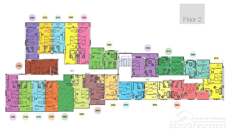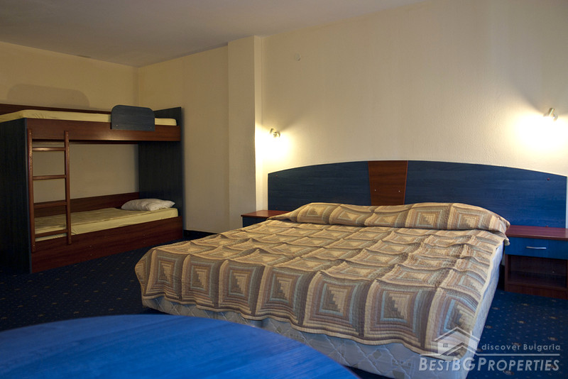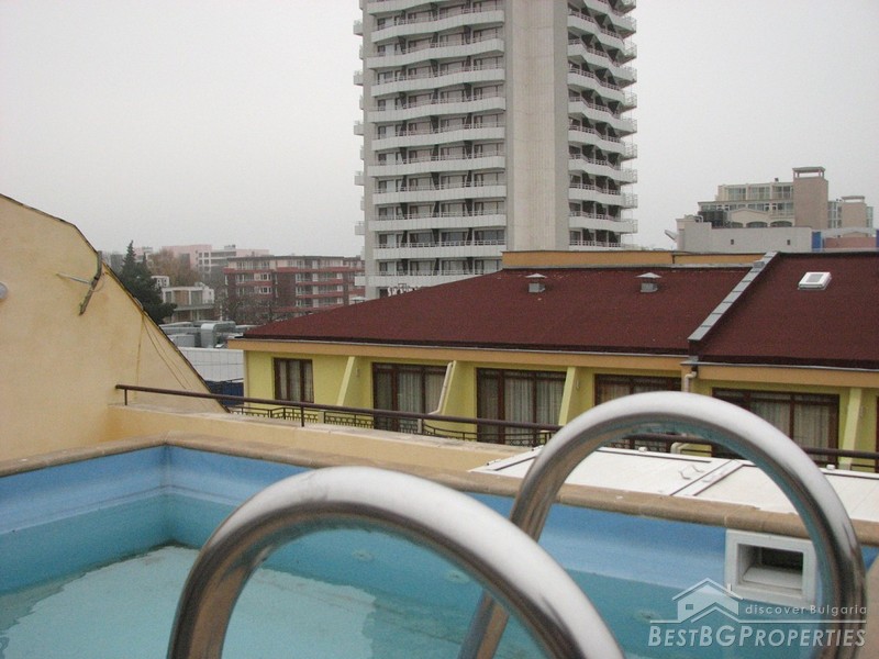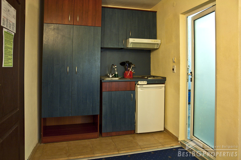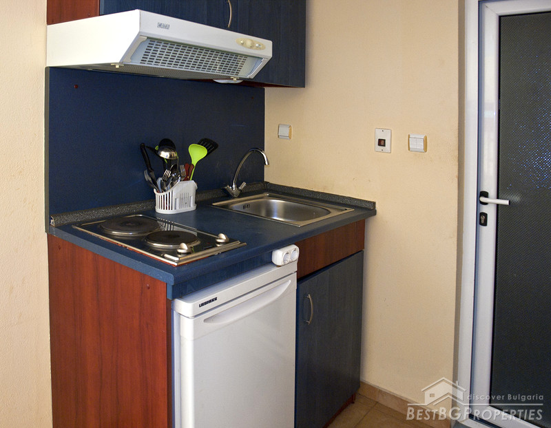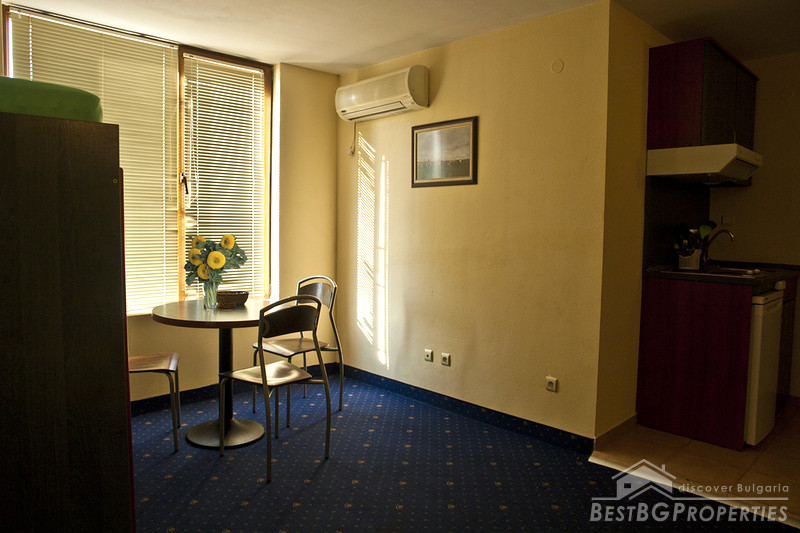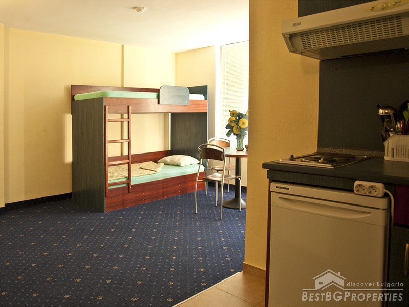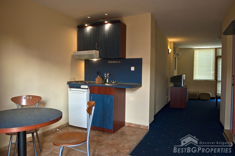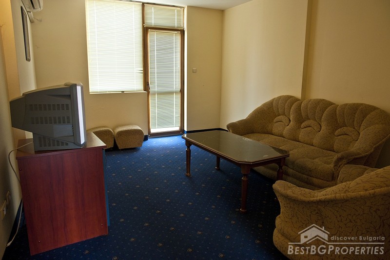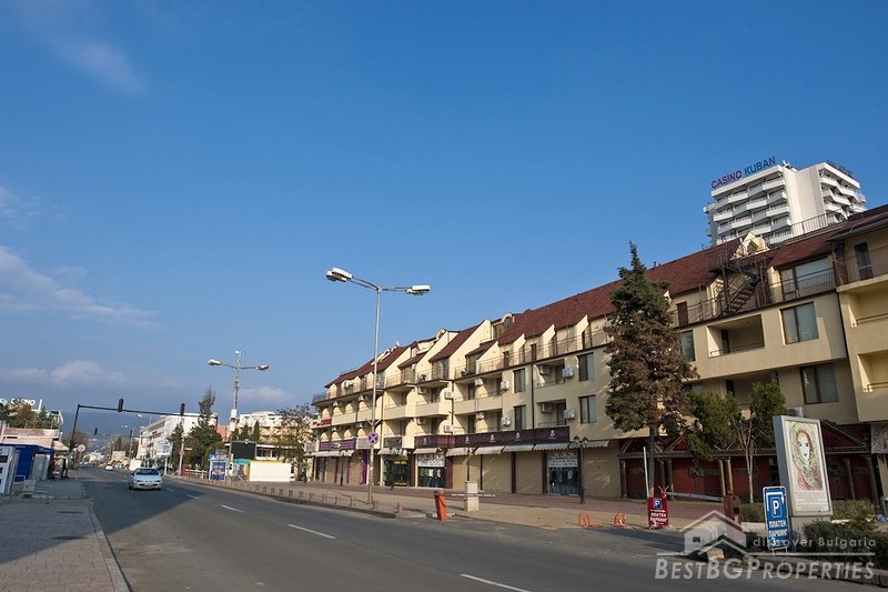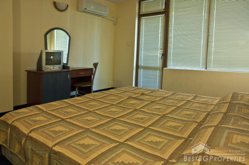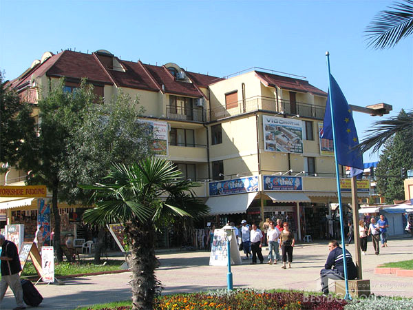 The apartment hotel is situated in the heart of Sunny Beach, 170 meters from the beach. The ground floor comprises: a restaurant, supermarket, pizzeria, shops and doctor's office. There is also a parking, reception, round the clock security and video surveillance and a Jacuzzi.