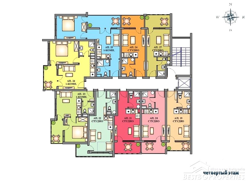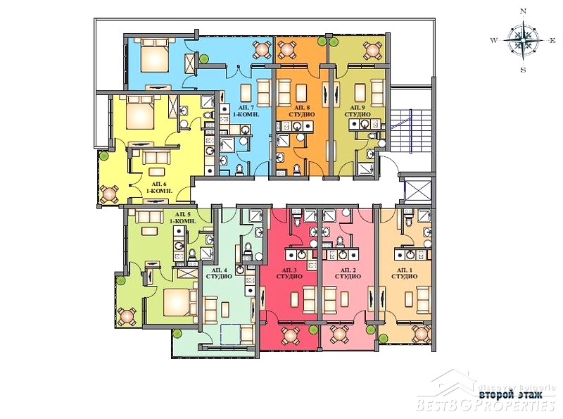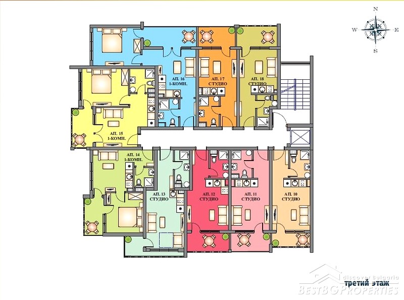 The complex is built with high quality building materials due to European standards. You can choose apartment with different disposition - studio, one bedroom or two bedroom, in quiet area of Sunny Beach. All apartments have nice balconies. The proximity to the sea shore and the exceptionally well created infrastructure of in the resort, make the complex undoubtedly attractive to people who are looking for an easy access to every kind of entertainment and convenience that the resort offers.