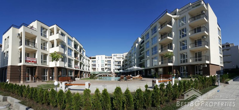 In this new project are taken into account the most diverse requests for the discerning customers. It is in a quiet beautiful place - the best for a relaxing stay - 350 m from the beach, Cacao Beach. The complex is designed according to the wishes of families who would like to come to Bulgaria for a long period. Near the complex there are no noisy nightclubs and discos, rowdy British and Germans. The complex is located in the most elite western part of Sunny Beach, where prices per square meter is traditionally 10% higher than in other parts of the resort. The complex is next to the building of the Ministerial Council - the summer residence of Bulgarian authorities.