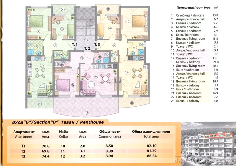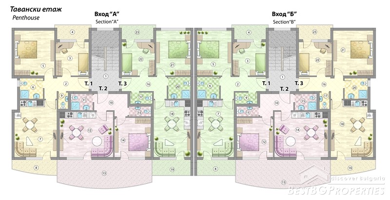 The building is almost finished, near act 16 stage of completion. It is situated in the Vinitsa district of Varna city, far from the noise and tension of the big city. The neighborhood combines in one whole the quietness, calmness and the amazing panorama. It isset 16 km away from the Varna International airport, 2 km away from the resort St. St. Constantine and Elena, 8 km from the center of Varna city, 10 km from the famous resort Golden Sands. During the construction of this complex have been used highest quality materials and the building went according to the highest requirements with special care to each detail. For the convenience of the owners there are provided parking spaces.