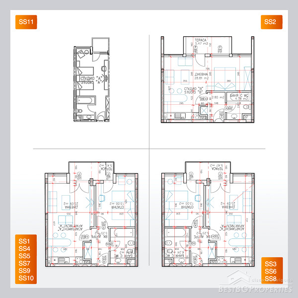 - The complex offers studio and one-bedroom apartments with various furniture and equipment.