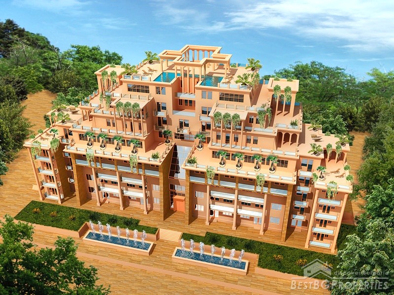 This extraordinary residential complex is a masterpiece of the Moroccan art and development, located in one of the most beautiful spots - Cabacum beach, near Golden Sands. It has 41 apartments in total spread on 8 floors with excellent guarantee for total privacy and luxury environment. Two luxury lifts, underground parking, conference hall on the ground floor. The building is the only one in the region with artificial waterfall and Jacuzzi on the roof.