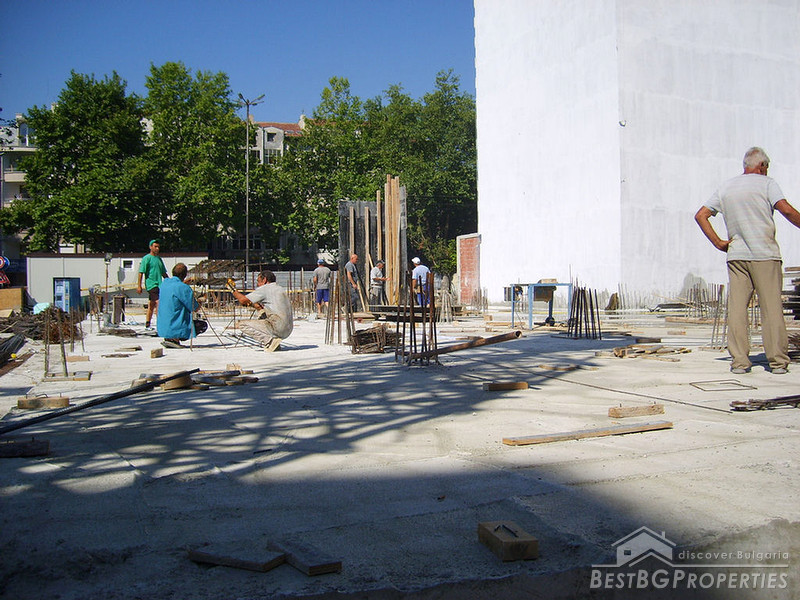 This apartment block is located in the centre of Bourgas City, only 10 min walking to the Sea Park and the beach. The city of Bourgas is an administrative, transport and social centre with an international airport and seaport. It is also an attractive sea resort offering excellent opportunities for recreation and fun. One of the most popular sea resorts – Sunny Beach , Nessebar , Pomorie , Sozopol are located less than 20 km from Bourgas.The apartments and the offices we offer are situated in a newly built complex. The ground floor will comprise a supermarket and a restaurant. The offices will have a separate entrance. The building is fully finished:Outside insulation – ceramic tiles,Stairs – granite tiles,Walls – plastered,Floors – plastered,Bathrooms and toilets – plastered,Pipes and draining system – installed,Electric system – installed,Door bell and intercom – completed,Windows - white PVC frames,Doors – MDF.We can finish the apartment and offer a furniture package for a reasonable price.The complex will be fully finished by December 31, 2008.