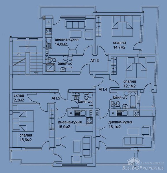 Residential building with beach-line apartments and sea view in Kiten. The building is 50 m from the beach. It is luxurally finished with external and internal insulation, laminate and terracotta flooring and fully equipped bathrooms/WCs. There are several one bedroom apartments left for sale.