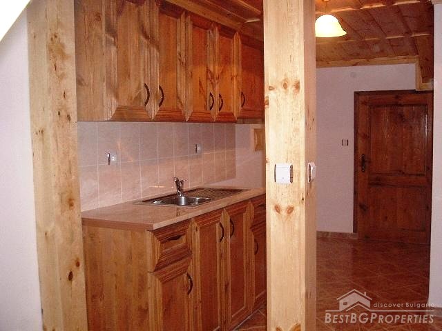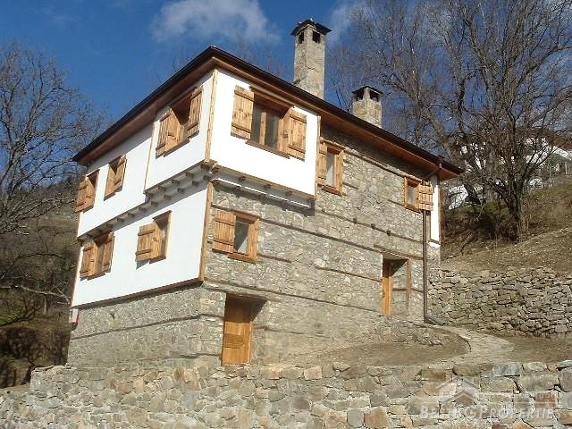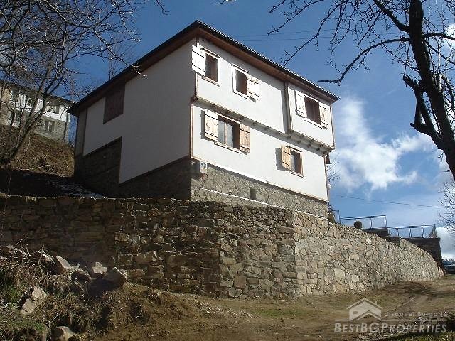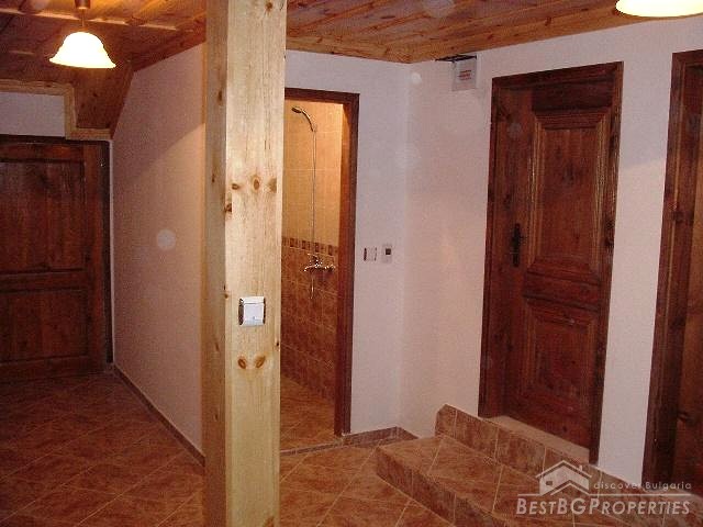 It consists of two floors and one half underground. On the first floor there are: two bedrooms and bathroom. On the second: two bedrooms, living room with fireplace and kitchen. The house is completely renovated with high quality wooden materials. There are new modern kitchen and bathroom and internal stairs. And the best of all it is preserved in the way it was for centuries. Water and electricity are available. The property includes a big 400 sq m yard. It is situated in the higher part of the village near the church and has awesome panoramic views. It is surrounded by green areas: forests and rivers. In the village there is mineral spring.