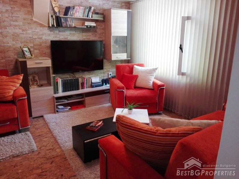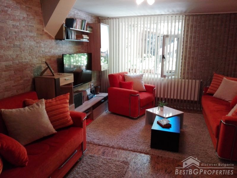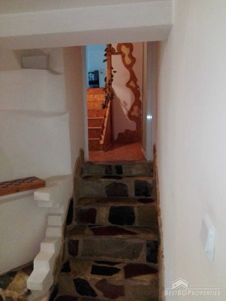 The house has 8 cm outside insulation, PVC window frames, sewerage, possibility for gasification, etc. It is sold partly furnished.