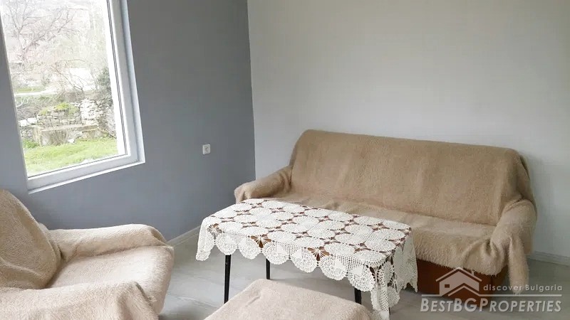 The house is after a complete renovation. It consists of 2 bedrooms (one with en-suite bathroom and toilet), a living room, a room for a kitchen and another bathroom with WC. The finishing includes 5-chamber PVC windows, 8mm laminated parquet, granite tiles in the kitchen area, drywall ceilings (lighting fixtures in the living room) and so on.