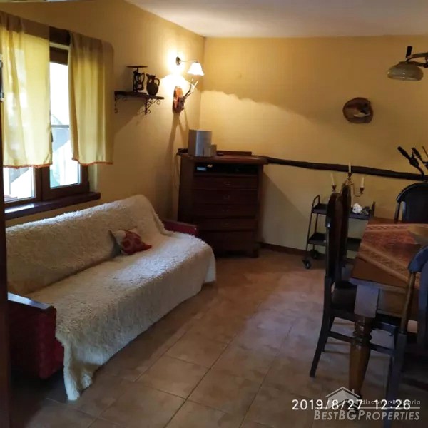 The house has two floors: First floor - living room with fireplace, kitchen and a bathroom with toilet and bidet. On the second floor - two bedrooms with a large terrace.