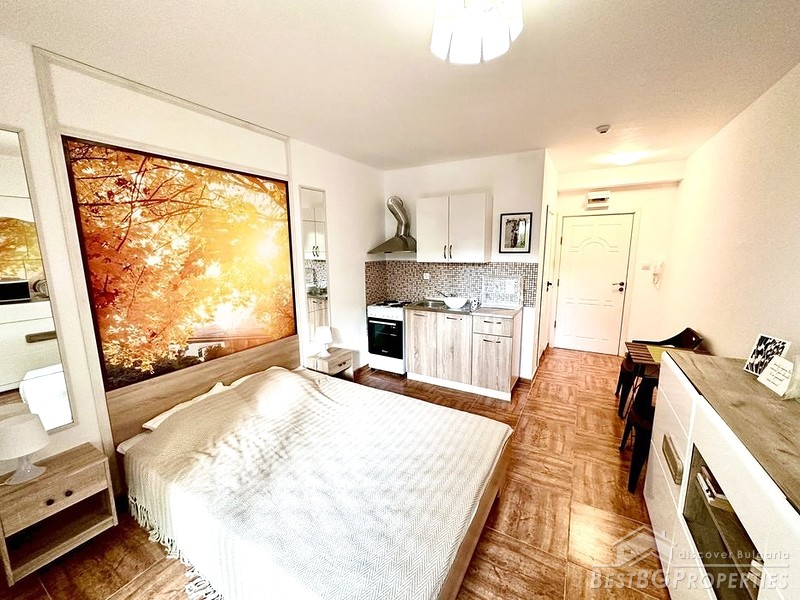 We would like to bring to your attention this luxury, small, neat studio apartment, located in a gated residential complex on the first line from the sea in Saint Vlas Sea Resort.