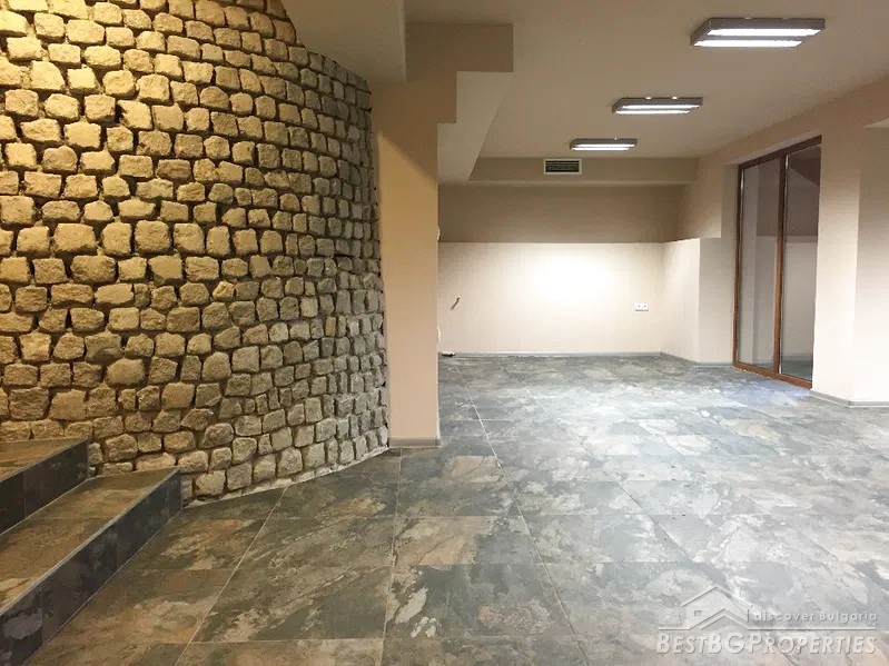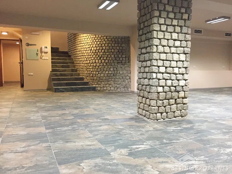 This is a luxuriously finished two-level commercial property with an area of 111 sq m. It is located on the ground and first residential floor in a residential building in Varna.