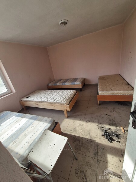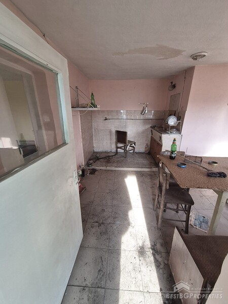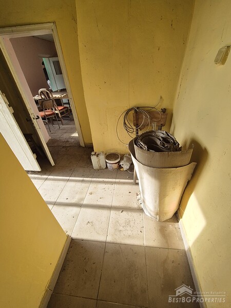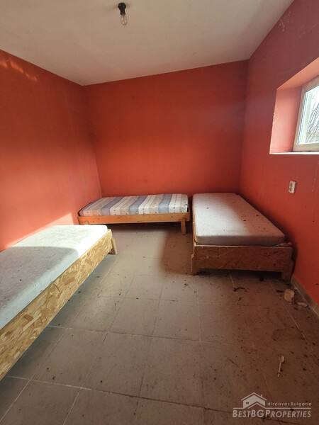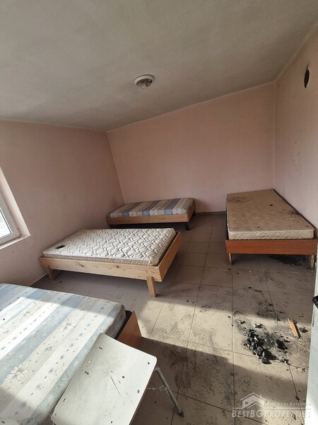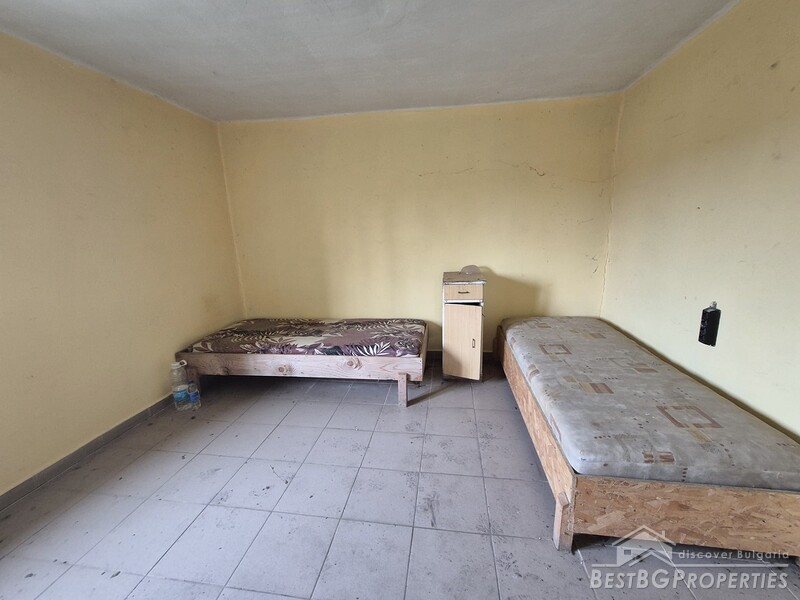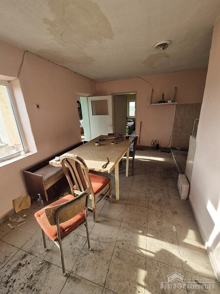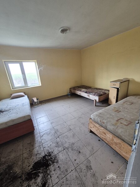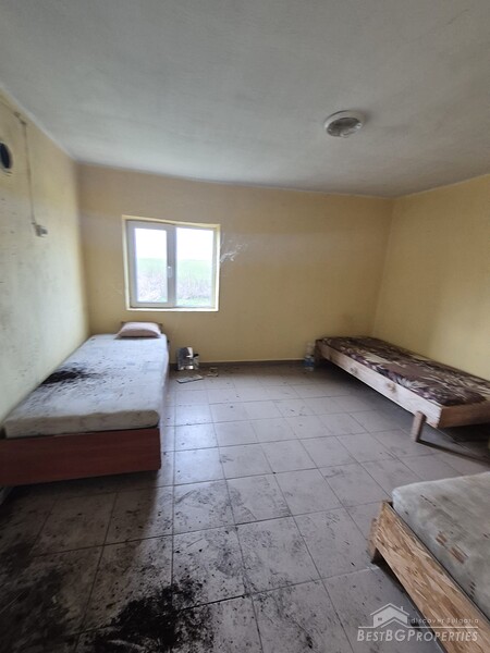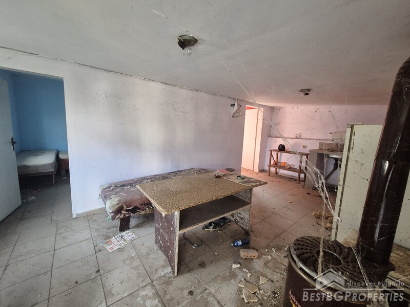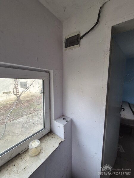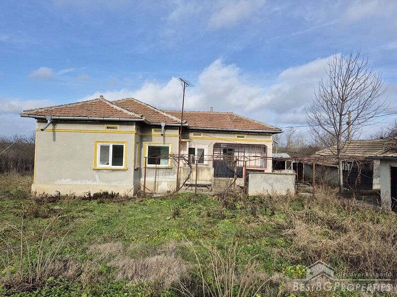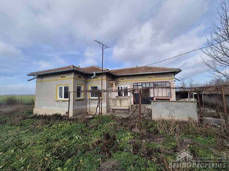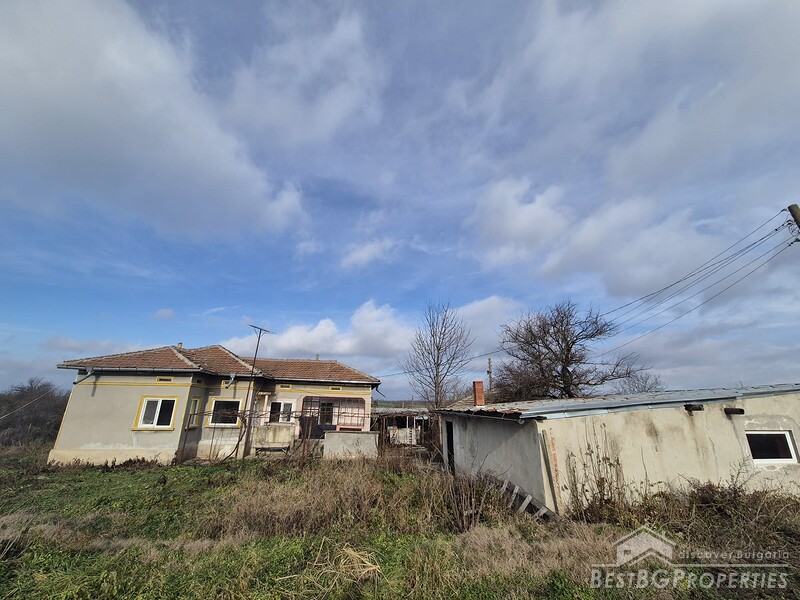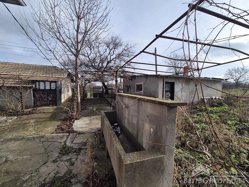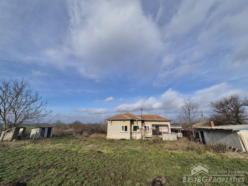 This spacious countryside property is located in a quiet village just 19 km from Dobrich. The property sits on a 2,450 sq.m yard with several outbuildings and a large garage. One of the buildings, fully renovated and previously used for living, offers 40 sq.m with two bedrooms, a kitchen, and a bathroom. The yard is irrigated, and the house has a septic tank.