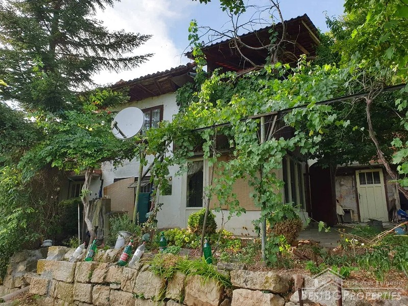 The property consists of a house on two floors requiring renovation, a terrace, a garage, additional outbuildings and a spacious yard. The yard has an area of 1200 sq m. The house itself has a total living area of 160 sq m. The construction is a combination of trimmer joists and concrete slabs. The first floor is made of cut stone, and the second - brick.