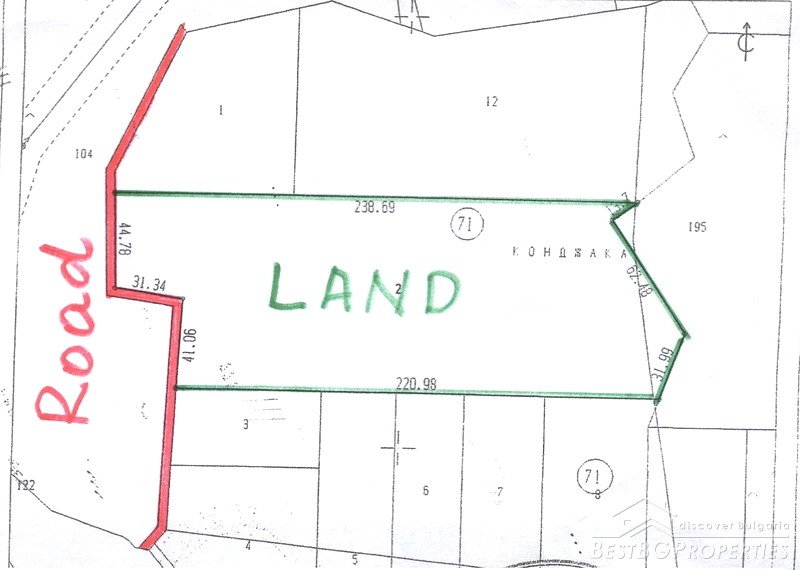 The land is located in a small village with about 350 residents between Veliki Preslav (the Old Bulgarian capital) and town of Tvarditsa. Distance to both being 22 km, to the regional centre city of Shumen 35 km and the same distance i.e. 1/2 hour to the heart of the Balkan Mountain. Varna- where the nearest International Airport is is 130 km far.It is a large plot at the rate of 21000 sq m and it is situated right next to the regulation of the village, just 350 meters from the famous lake of Ticha- which is the second biggest dam in Bulgaria. The access is good all year around. It isn`t through an asphalt road but there is a dirt one. Water, electricity and asphalt road are only 100 meters away from the plot.