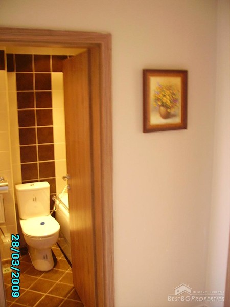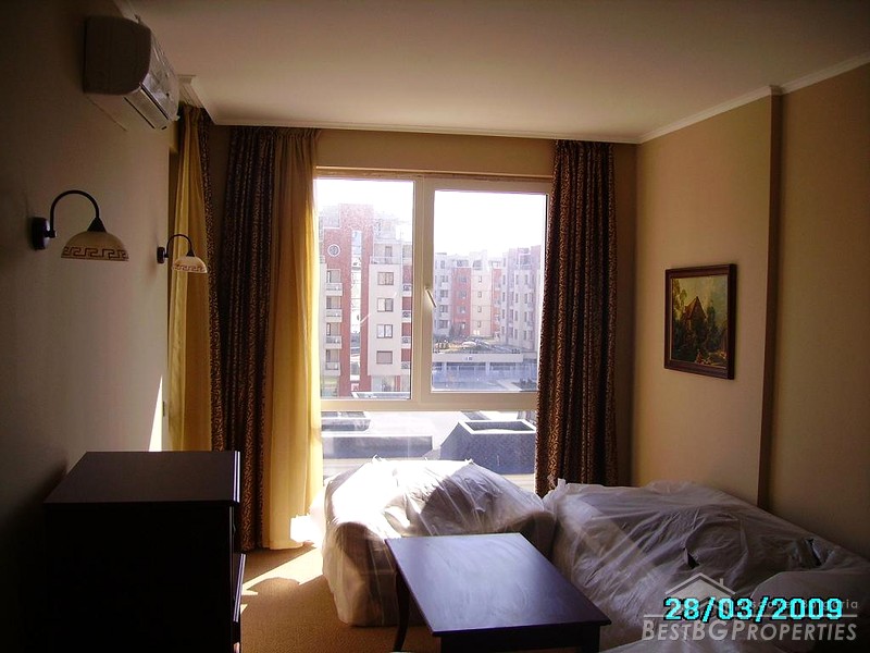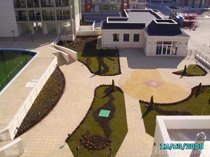 There is a restaurant, bar, several shops, SPA and well equipped fitness center in the complex. For the security of your car the development offers a large semi-underground parking place with separate cells. The cafй and the cocktail bar, designed in the same gorgeous style, add an elegant atmosphere to both your morning coffee and evening cocktail drink. In the classical restaurant you can taste the abundance of dishes from the traditional Bulgarian cuisine. You can give a real treat to your body and soul in the SPA center using the latest developments within natural cosmetics, unique SPA and aroma therapy.