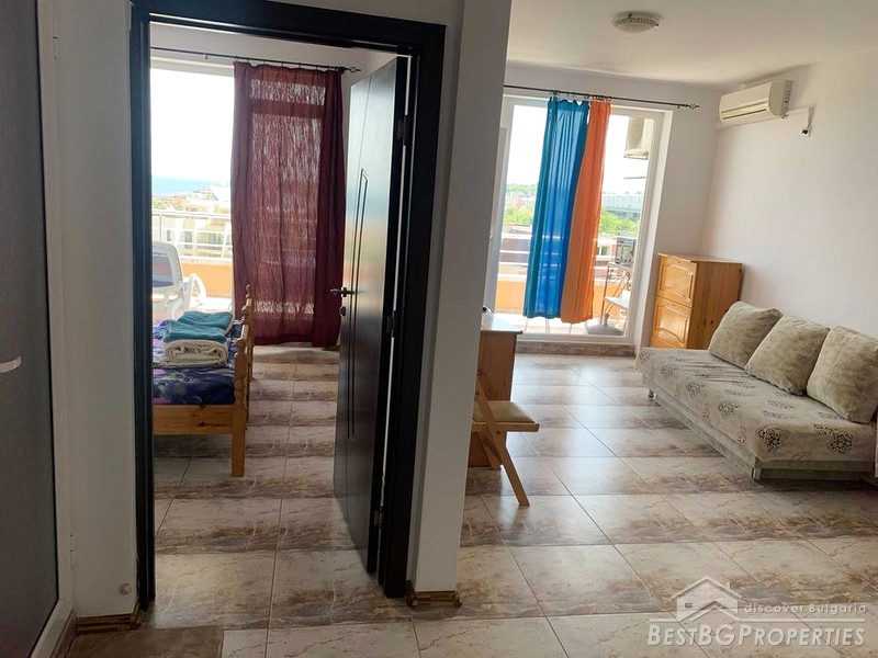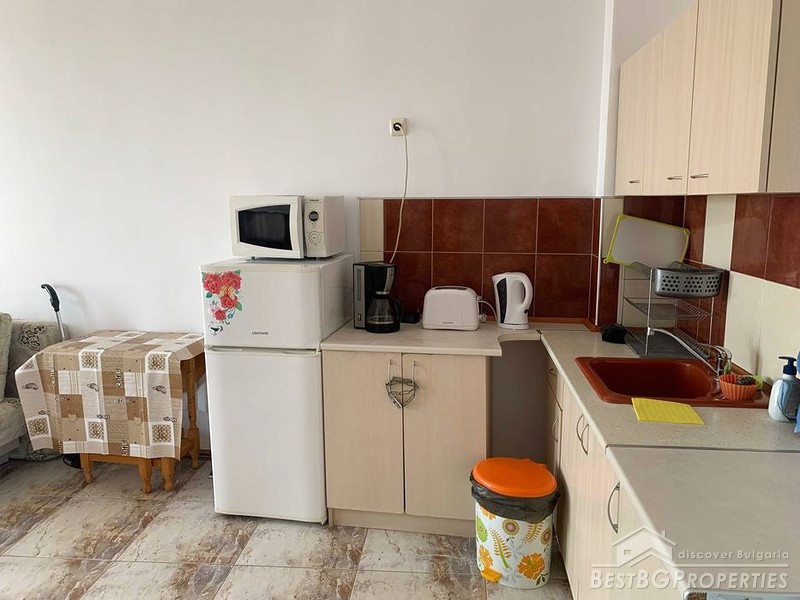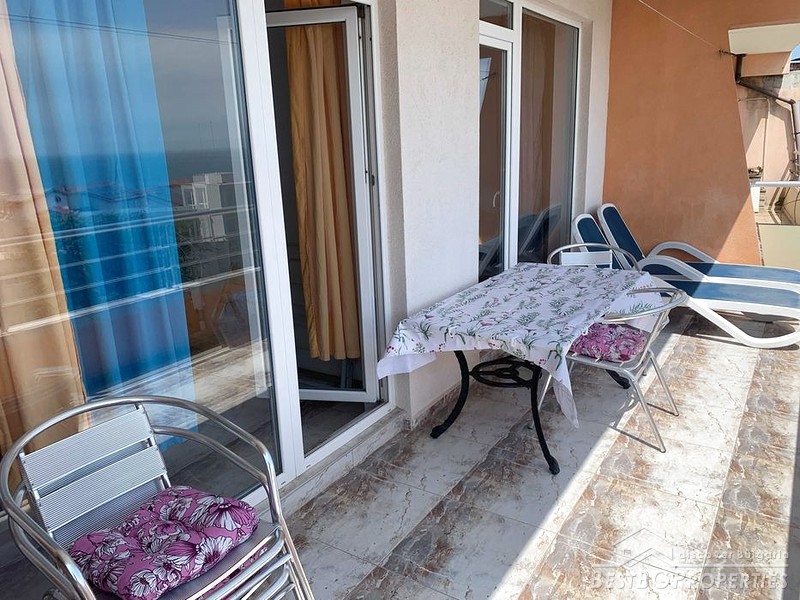 The apartment presents itself a great investment, being fully equipped for all season rental. It is in excellent condition, furnished and equipped with everything you need for a wonderful seaside holiday. The apartment is located on the second floor, boasting a total living area of 60 sq. m. It consists of a living room with a kitchen, a bedroom, a bathroom with a toilet and a huge terrace.