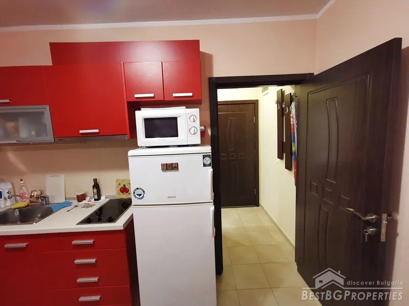 The studio is located in a super communicative place in Sunny Beach in a new complex with many amenities. Just meters away is the Mladost Supermarket which is open all year round, as well as many other shops, a pharmacy, hardware store and fast-food restaurants. Everything is within easy reach and at the same time you are not far from the beach.