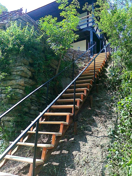 The land is 500 sq m in size and includes two buildings: 1) two-storey building with total area of 80 sq m, comprising the hotel part which consists of one apartment with two rooms and a bathroom on the first floor and two double rooms, each with separate bathroom on the second floor; 2) two-storey building consisting of a tavern with fireplace and fully equipped kitchen, bedroom premise and a spacious terrace on the second floor.