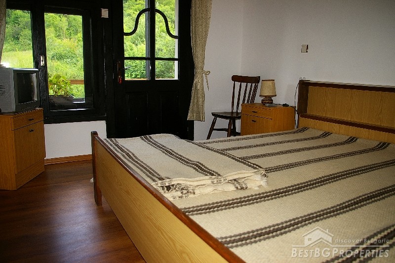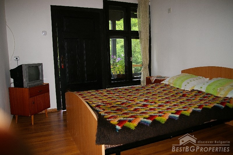 We are offering you for sale a functional guest house located in a picturesque mountain village near the town of Troyan. The village is 15 km from Troyan and 3 km from the mineral baths in the village of Chiflik. The house has a unique location on the bank of the Beli Osam River and is built in old-fashioned Revival Bulgarian architectural style.