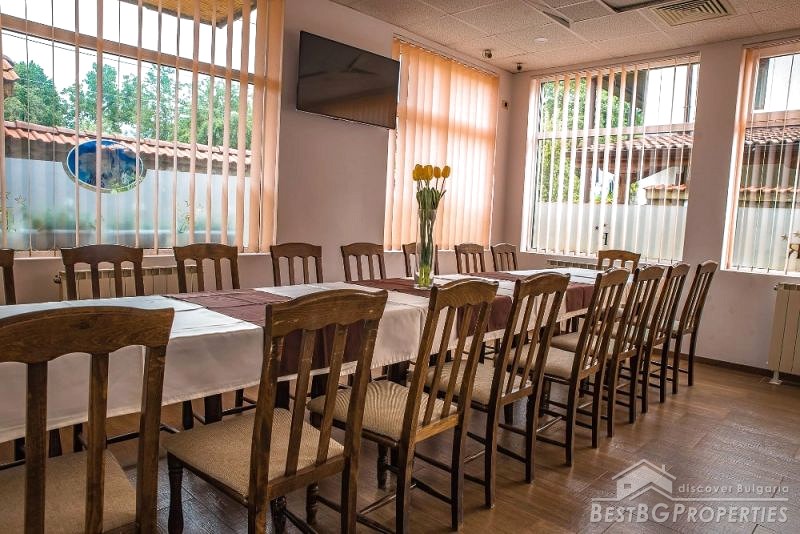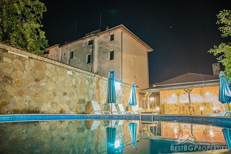 The property consists of two buildings - a 4-storey fully furnished and equipped building and an enclosed summer barbecue with a fireplace and an adjacent summer bar. The yard has an outdoor swimming pool 5x5m with depth of 1.10-1.20 m, a patio lined with stone slabs and a lawn. The whole property is enclosed by a high brick stone wall.