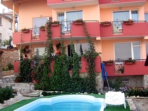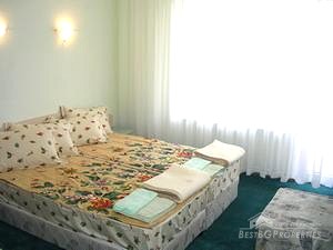 The hotel is for sale fully finished and equipped. It is equipped with solar panels, for the hot water, there is a fire place, air conditioners in each room, TV and cable TV. In each room on the second and third floors there is a mini bar. The yard is 1000 sq m large and includes parking and a pool 9x3.30. There is a dining for 20 people, two sheds with view over the sea, amazing garden. The hotel is set far from the noisy disco clubs and bars, so you can enjoy the silence and the wonderful sea view.