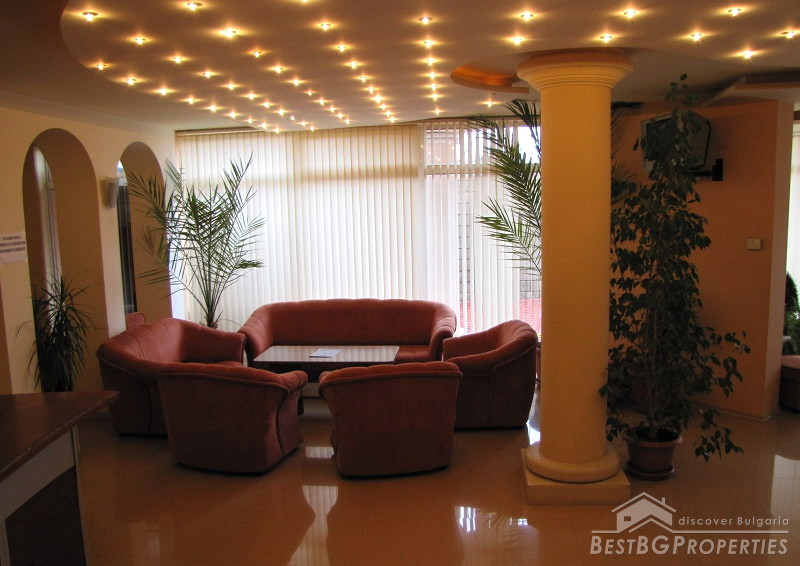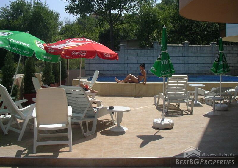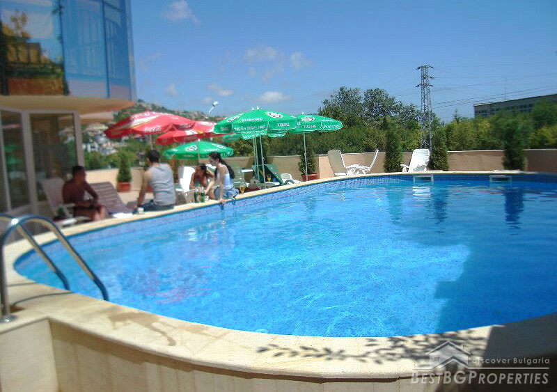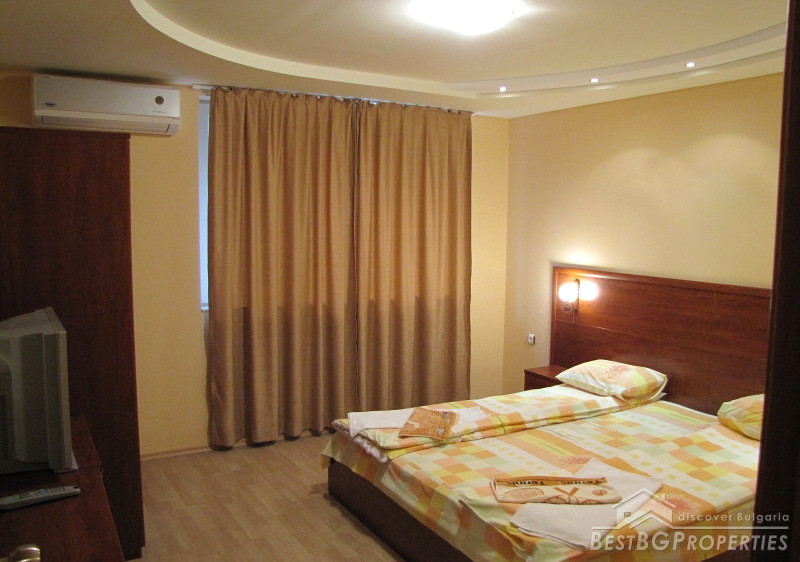 Our next offer is for a hotel for sale, located in the sea town of Balchik. The hotel has an area of 2000 sq m and comprises of 5 floors. The year of construction is 2007. The building is brick and features open air swimming pool, garage and parking. The hotel is fully operational.