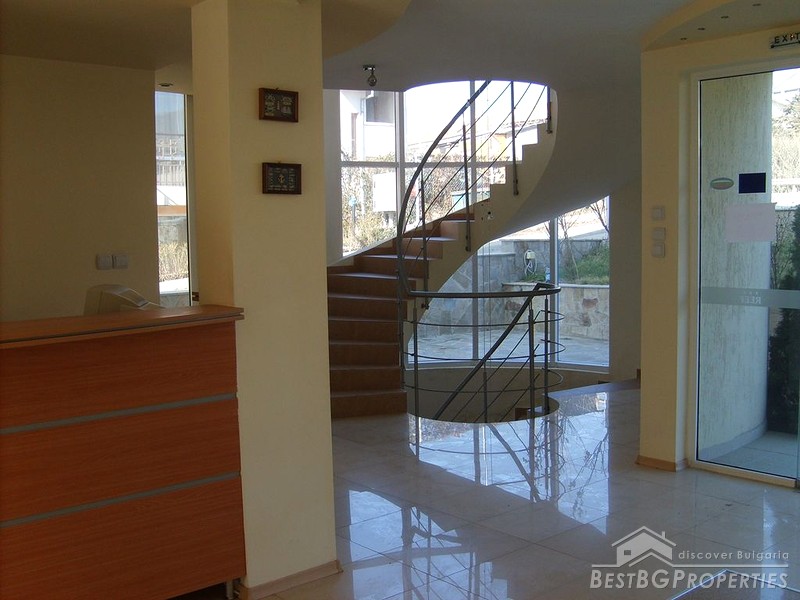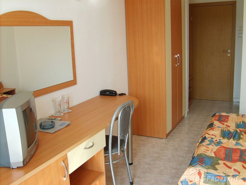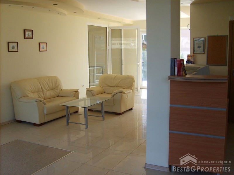 The hotel offers 13 double rooms and one studio. Each apartment or studio is equipped with a telephone, TV, minibar, balcony, bathroom with shower and WC, air conditioner. Almost every room comprises an amazing view towards the sea, Sunny Beach or Nessebar. Some of the amenities which are at the guest's disposal are: restaurant with terrace, outdoor pool, parking lot, reception and much else. The hotel is built on a private plot of land with size 980 sq m and it comprises total living area of 740 sq m.