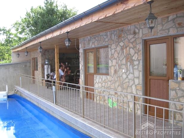 The hotel is built on a plot area with totals size of also 600 sq m. The yard has three levels of gardens as on the third level there is a barbecue and two rooms with bathrooms and WCs for guests. The area of the barbeque and the guest rooms is 100 sq m.