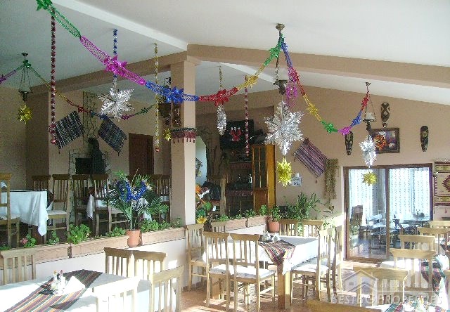 The complex comprises of a hotel part - 6 rooms and 2 large apartments, an indoor restaurant for 100 seats, open air restaurant with 300 seats, swimming pool with sun loungers, garden with spectacular scenery, sports court, a disco and a cozy area for the little ones.