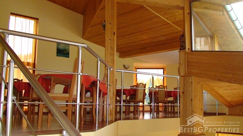 Our next suggestion is a small two stars hotel, located near the town of Smolyan near the famous Smolyan's Lakes. The distance to the town of Smolyan is only 4 km, the town of Devin is 30 km away, the famous winter ski resort Pamporovo where you can go skiing and snowboarding is 10 km away. The distance to the Mihailovo Lake where you can go fishing during the summer is 40 km. 1.8 km to the lift station Smolyan's Lakes and the Mountain peak Snezhanka. The hotel is 1300 in size, it consist of 9 rooms and 1 apartment, a restaurant, a bar, kitchen, Jacuzzi and sauna. The rooms are fully furnished with the highest standards: big double bed, wardrobe with mirror, couch, night stand, TV, Jacuzzi. There is a fire place in the restaurant area. There are solar panels and local heating installed, hot and cold water, electricity. The hotel has magnificent view to the surrounding nature, hills and forests. It is the perfect opportunity for investment.