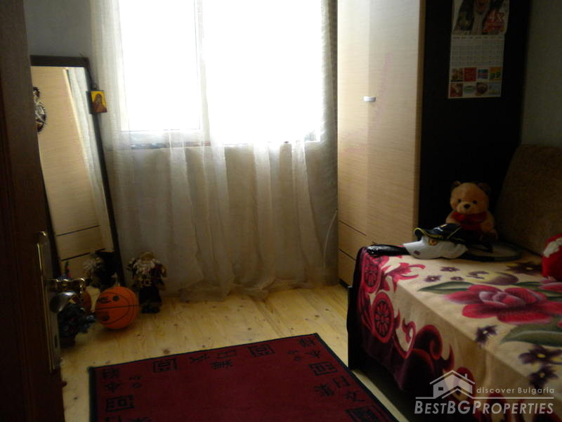 The first floor is also 150 sq.m. There is a big bedroom with wardrobe and 2 more smaller double bedrooms and a single bedroom as well, also there is a bathroom with tolet and a chramy terrace.