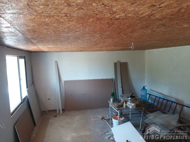 Inside the house is completed with plastered walls, ready for painting, equipped with electrical installation, plumbing, finished bathrooms with WC, PVC windows, metal entrance doors, etc.