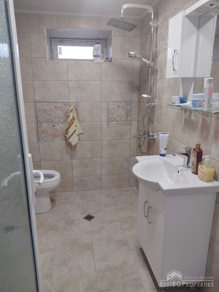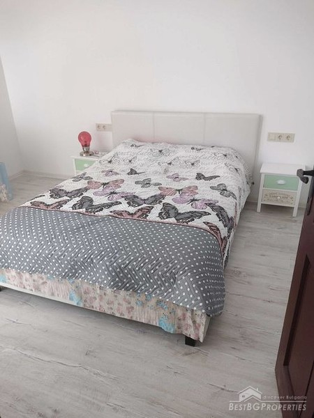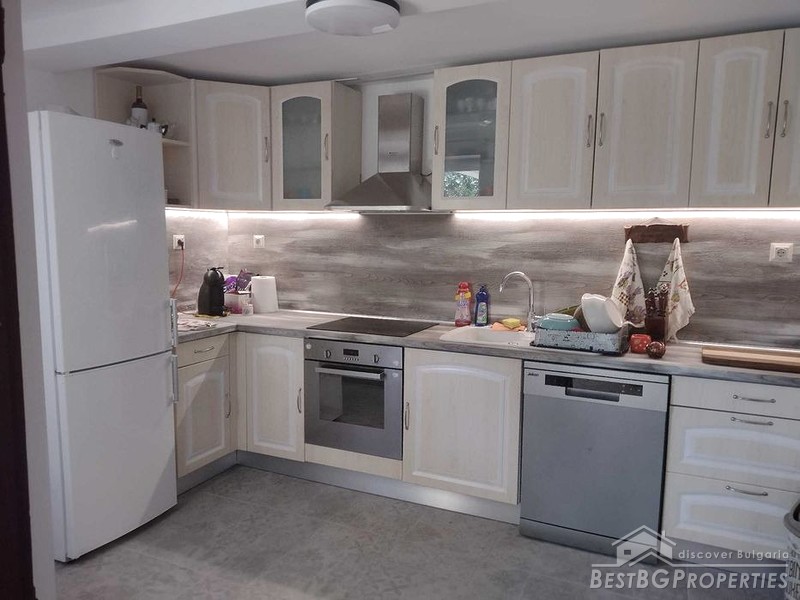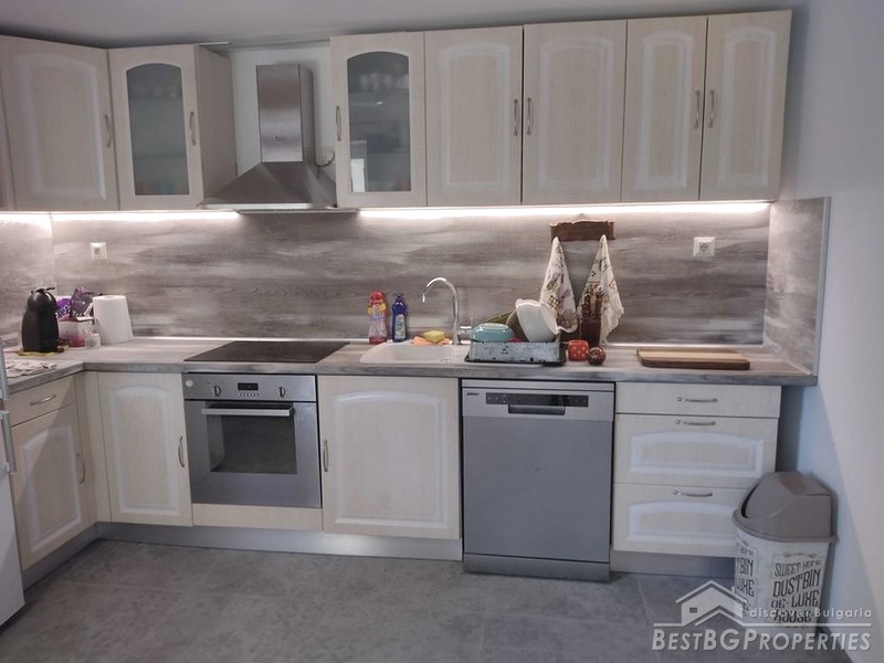 The property is for sale fully furnished with solid furniture imported from France. There are three leather sofas, one of them extendable and made of natural buffalo leather, all electrical appliances - oven, induction hobs, dishwasher, refrigerator, washing machine, 4 TVs, sound bar and furniture.