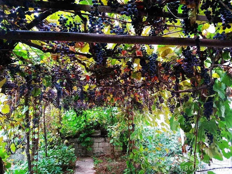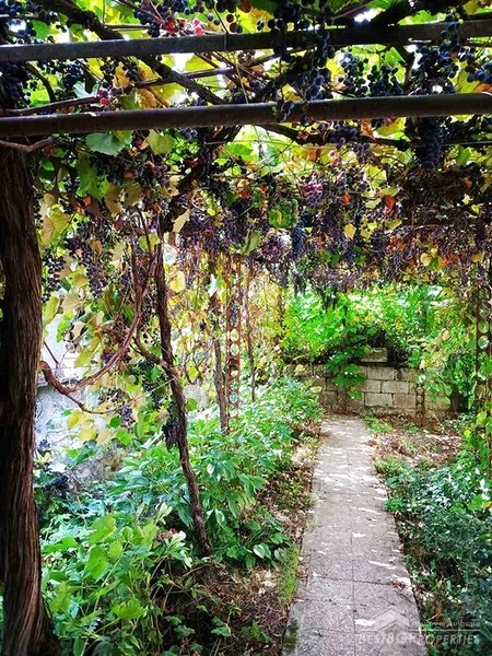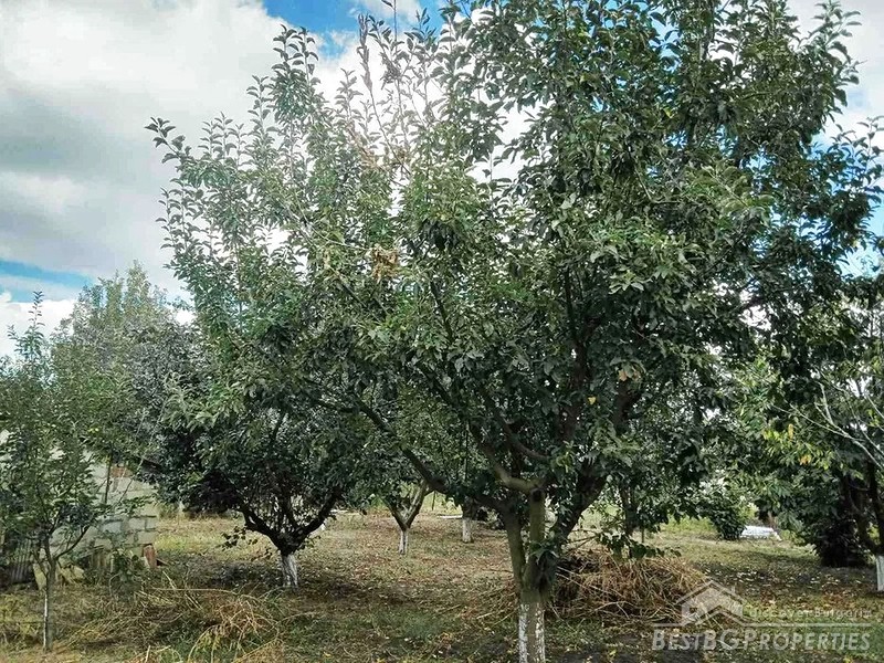 The yard is 1050 sq m in size. In it there are 24 fruit trees, a large 300 sq m shed, a garage and another building behind the house.