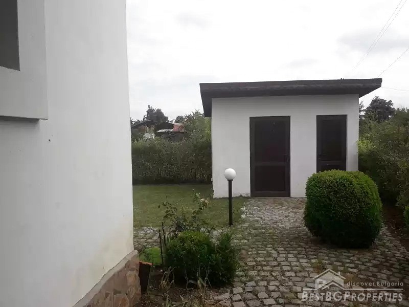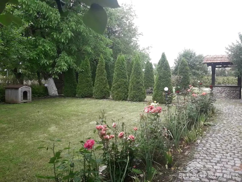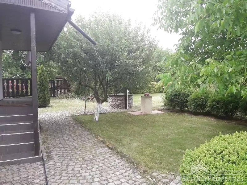 The offered house has an area of 90 sq m, spread ton two levels. The property is built on a plot of land with size of 1000 sq m. In the garden there is a shed with a barbecue (30 sq m) and a lot of greenery - fruit and ornamental trees. There is a well connected to an irrigation system, garden lighting.