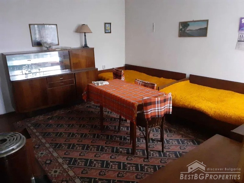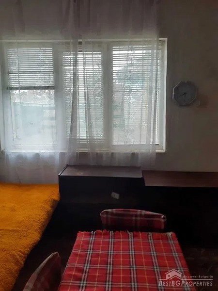 The house is equipped with PVC windows with metal horizontal blinds. The doors to the kitchen and the bathroom are also PVC. Both bedrooms and the living room are furnished. The summer kitchen is adjacent to the house with an inside connection.