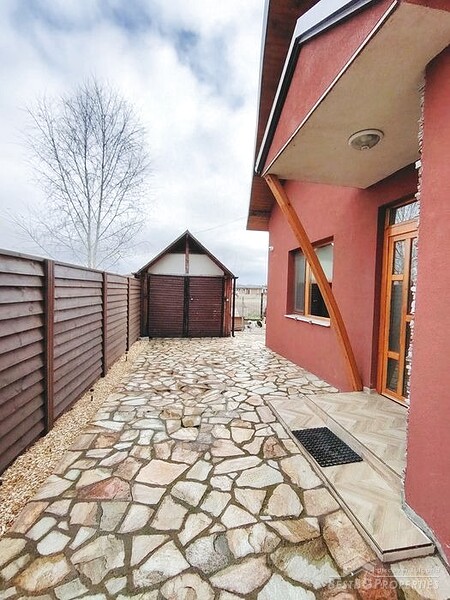The garden is flat and fenced, with a built-in probe and drip irrigation. There is also a veranda - 20 sq m a garage and 2 parking spaces, electric sliding gate. There is video surveillance with 8 cameras installed.