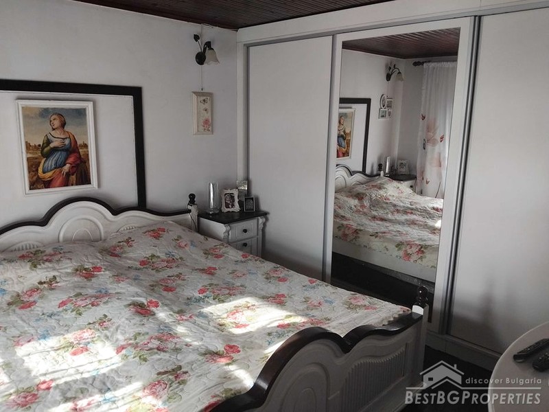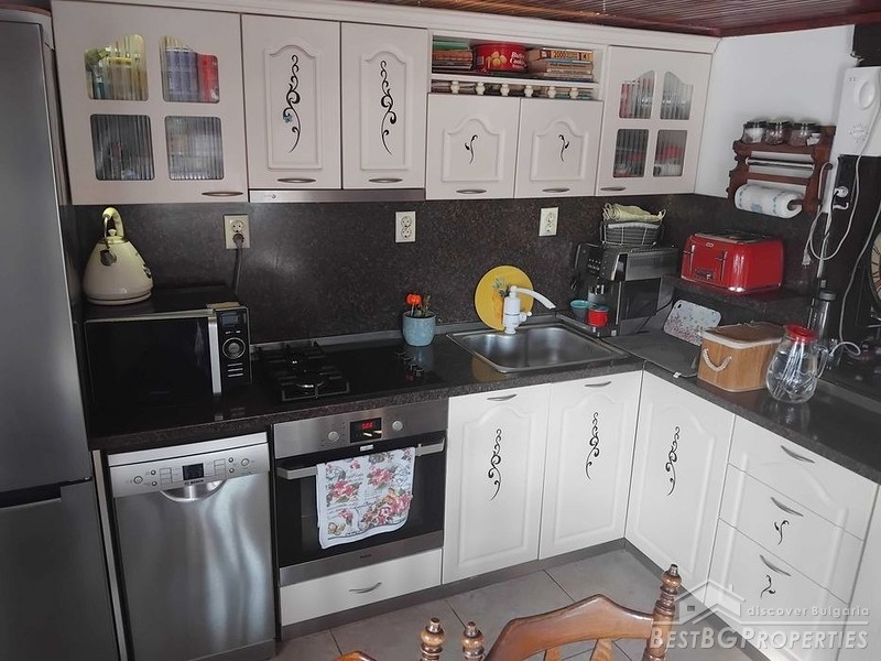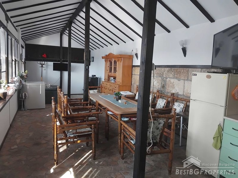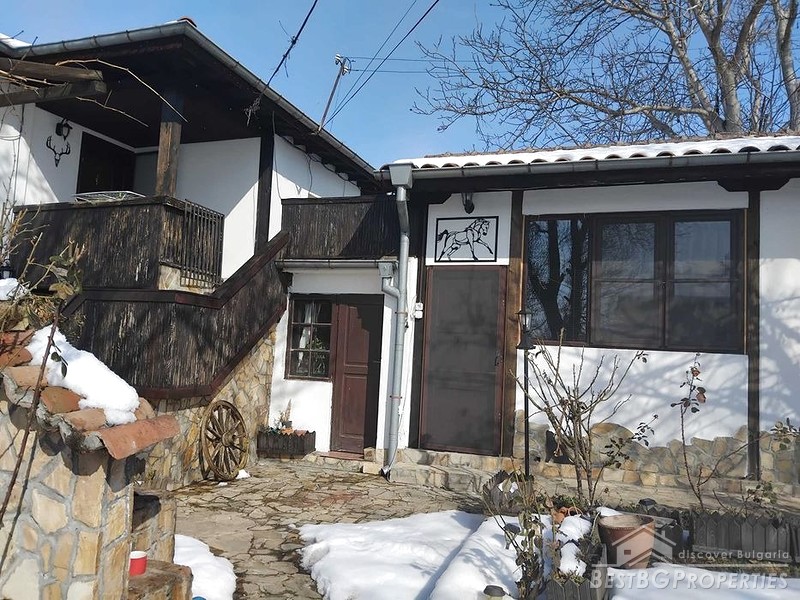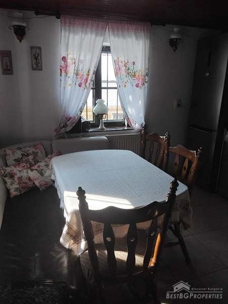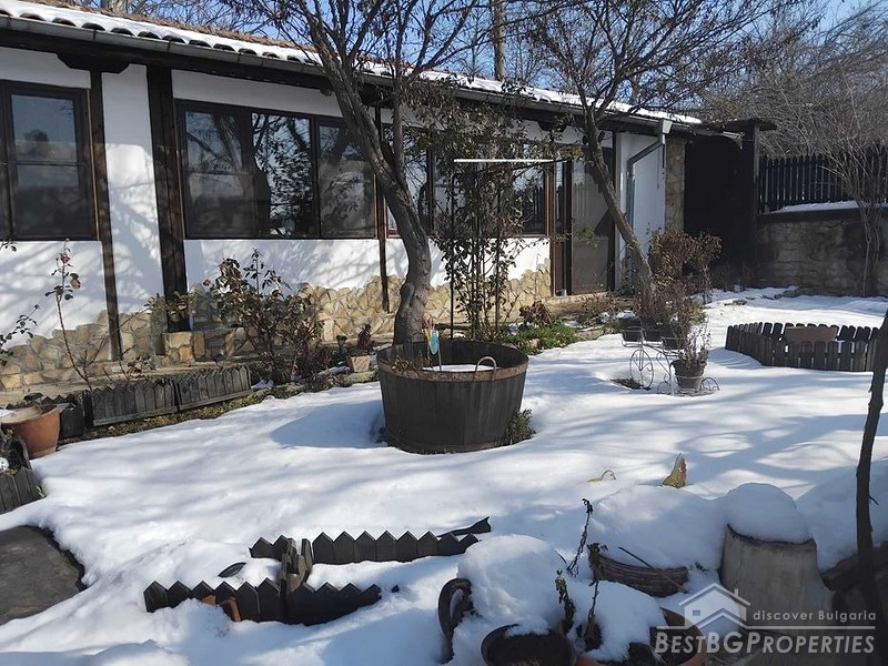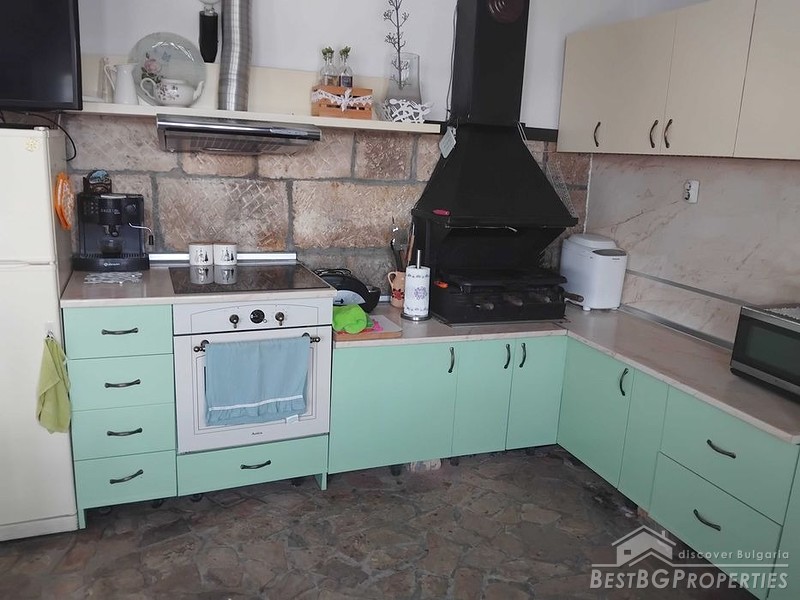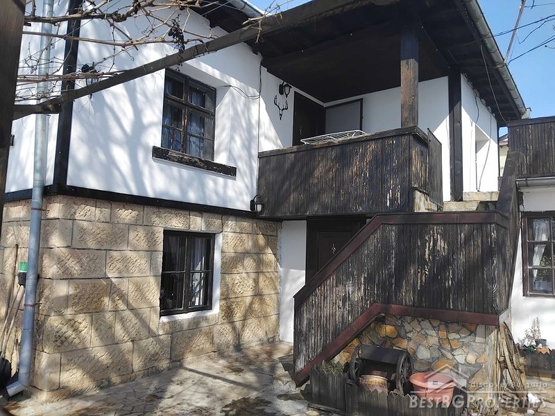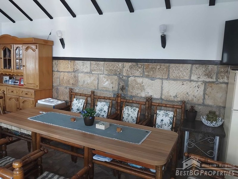 The house is built in an old Bulgarian style of stone, brick and wood. The house is fully renovated, furnished and ready to move in. It is very warm and cozy. The walls on the first floor are 70 cm thick stone, the floor covers in the corridors are finished with granite tiles. All the bedrooms have wooden floors. The heating is local.
