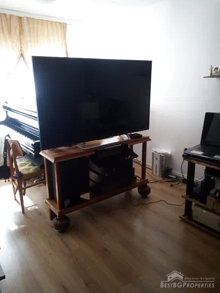 First floor - bedroom, living room, kitchen, bathroom with toilet and a storage room. This floor is equipped with a fireplace connected to the local heating, a Sony TV, Liebher refrigerator, Hansz electric and gas hobs, Whirpool electric oven, Elektrolux washing machine, water purification and softening machine for the whole house, piano Niendorf - black 170 cm and so on.