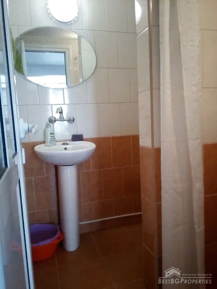 The house is on two floors – 46 sq m per floor. The yard is 489 sq m. The property also comes with a garage of 25 sq m, and storage rooms.