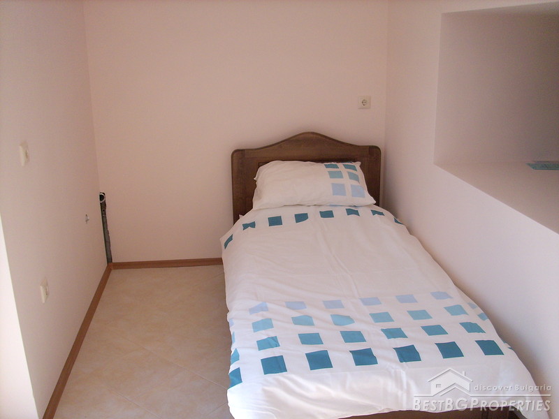 This is a renovated house for sale, situated in the sea town of Balchik. The property is a 2 storey detached house with living area of approximately 130 sq m. The first floor consists of a living/dining room with a fireplace, a kitchen. There is also a shower room, double bedroom and a corridor. A stairway is leading towards the ground floor.