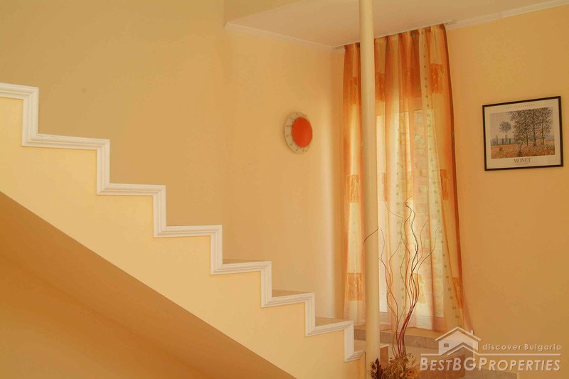 The whole house is fully furnished and has local heating, perfect for whole year around residence. The yard has total size of 612 sq m and includes its own well, place for a swimming pool, and a barbeque. In the front part there is space for three vehicles. The access is through an asphalted road. Proximity to all communications and the main road Varna - Golf club - Kavarna - Durankulak.