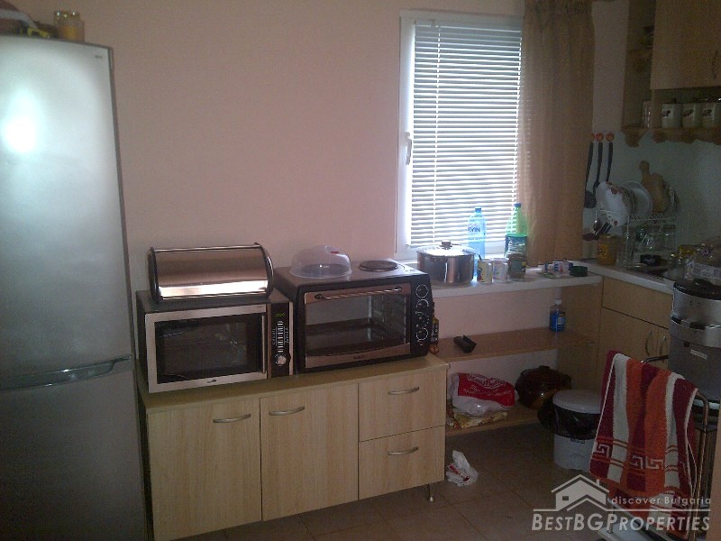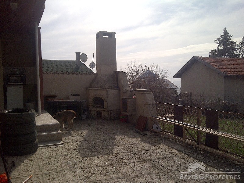 The house is built on a plot of land with size 500 sq m and offers total living area of 100 sq m distributed among two residential floors. The building is finished with thermal isolation, and mineral plastering. It consists of three bedrooms, kitchen with dining area, two bathrooms and two WCs. In the yard there is a barbeque.