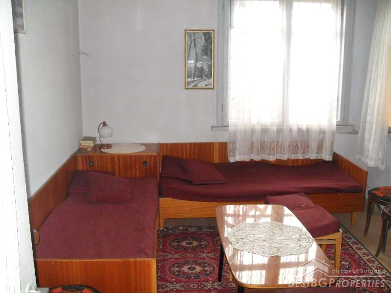 The total living area is approximately 270 sq m. The yard is 396 sq m. The house has electricity, water, sewer and telephone. It consists of the following: on the first floor there are five large bedrooms, bathroom and stairway to the attic. One of the rooms has a door to the street and can be used for commercial purposes. The attic has two rooms with balconies and a storage space. There are basement premises with normal height under the entire building.