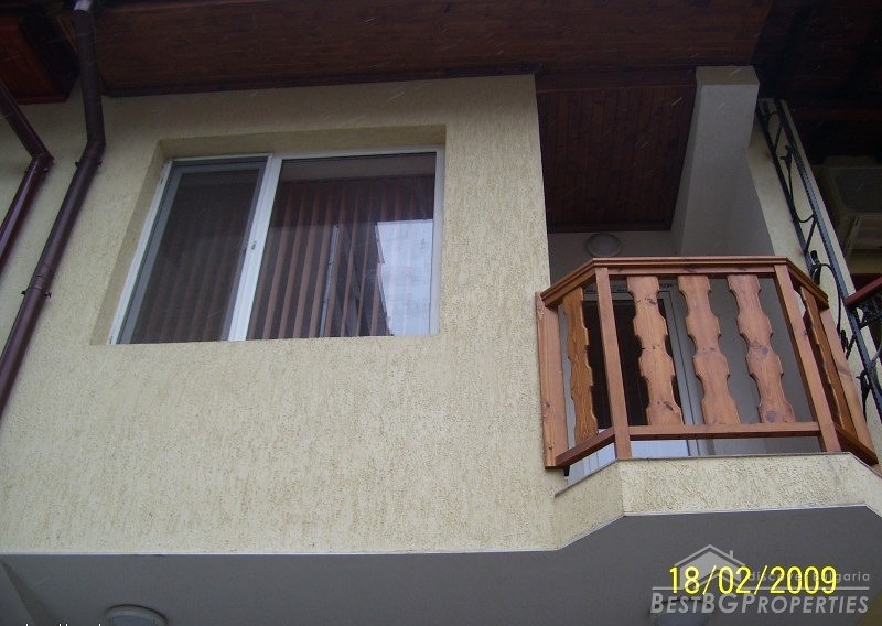 The house is brand new, finished in 2008 and meant as an administrative building. It comprises two residential floors and total living area of approximately 100 sq m. The first floor consists of one premise used as a shop, another one used as storage and a bathroom with WC. The second floor comprises a separate entrance and consists of two separate rooms, each with its own bathroom with WC and balcony with nice views.