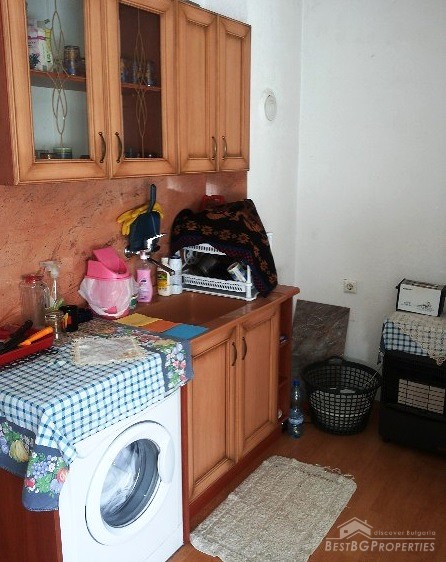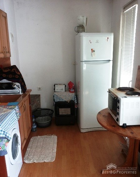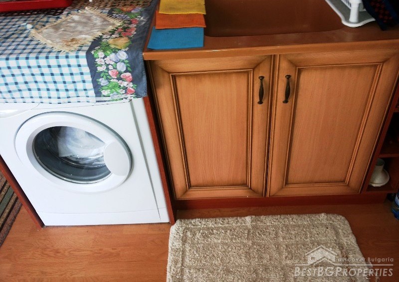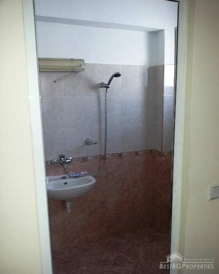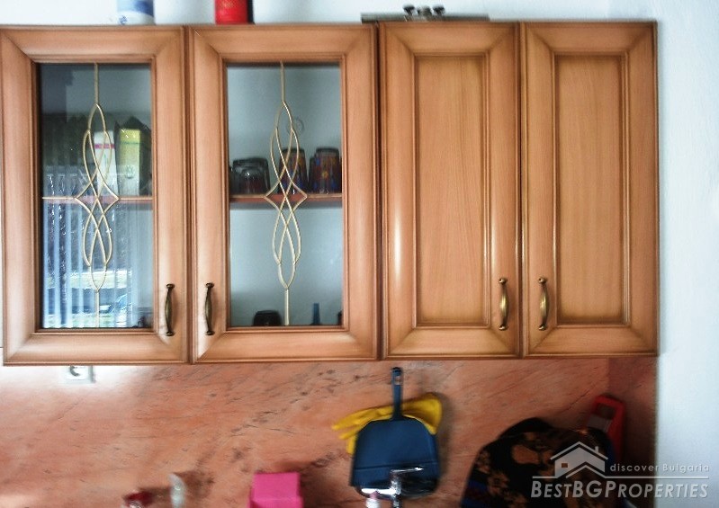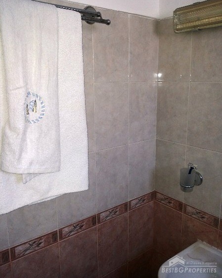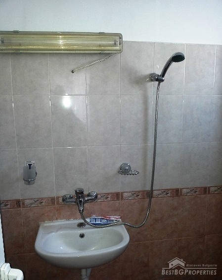 The house comprises of three floors. It is divided in to separate apartments. Each apartment comprises of two rooms and a kitchen box. All of them are fully furnished and ready for living. The apartments have total living area of 67 sq m each. The attic consists of two rooms – bedroom and a kitchen, with bathroom and WC. There are also three storage premises. Its area is 40 sq m. The stores are 50 sq m each and comprise with bathroom, WC and small storage.