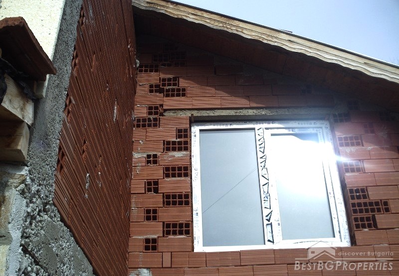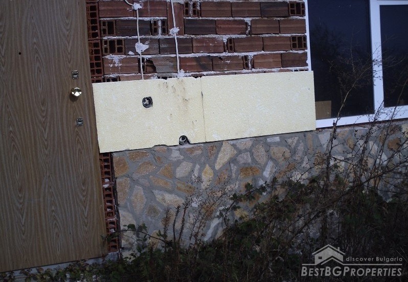 The house consists of 3 rooms on the first floor - kitchen, bedroom and bathroom - 72 sq m. The second floor comprises of a large bedroom with area 40 sq m. The house is finished with stone decorated walls and outside isolation, inside isolation, suspended ceilings and drywall from the inside, PVC window joineries, armored front door, plastered floors. The price also includes partial furnishing – tables, couches, beds and chairs. There is only a little final finishing necessary before you could move in.